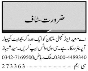 Computer Operator & Data Entry Operator Jobs 2021 In Multan