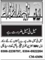 Apply as per details in job advertisement. Login to view further details of how to apply via https://www.jobz.pk online.