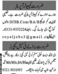 Computer Operator & Female Teacher Jobs 2022 In Peshawar
