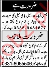 Computer Operator & Housemaid Jobs 2021 In Abbottabad