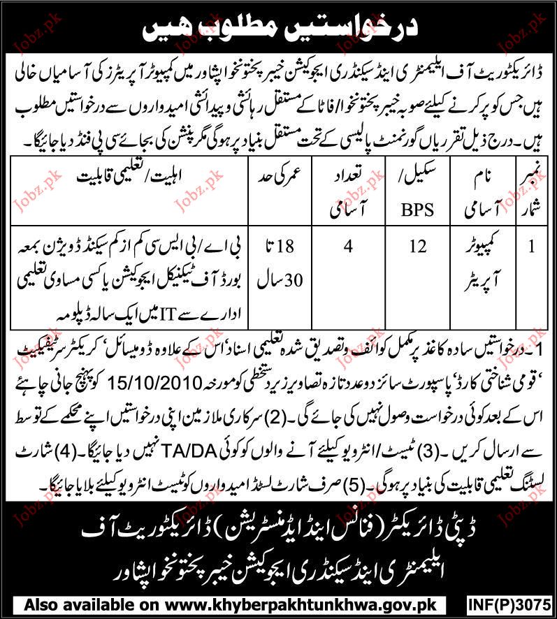 Apply as per details in job advertisement. Login to view further details of how to apply via https://www.jobz.pk online.
