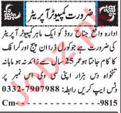 Apply as per details in job advertisement. Login to view further details of how to apply via https://www.jobz.pk online.