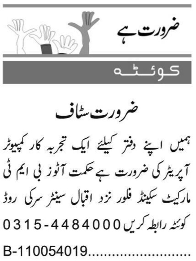 Computer Operator Jobs 2023 In Hikmat Autos Quetta