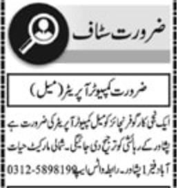 Cargo Company jobs advertisement dated about 10 May 2025 in daily Mashriq Newspaper invites application for the vacant post of computer operator in Hayatabad Peshawar, peshawar Khyber Pakhtunkhwa KPK Pakistan. Educational qualifications required BA, Intermediate and Bachelor etc.