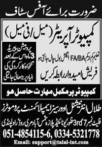 Computer Operator Jobs in Talal International OEP