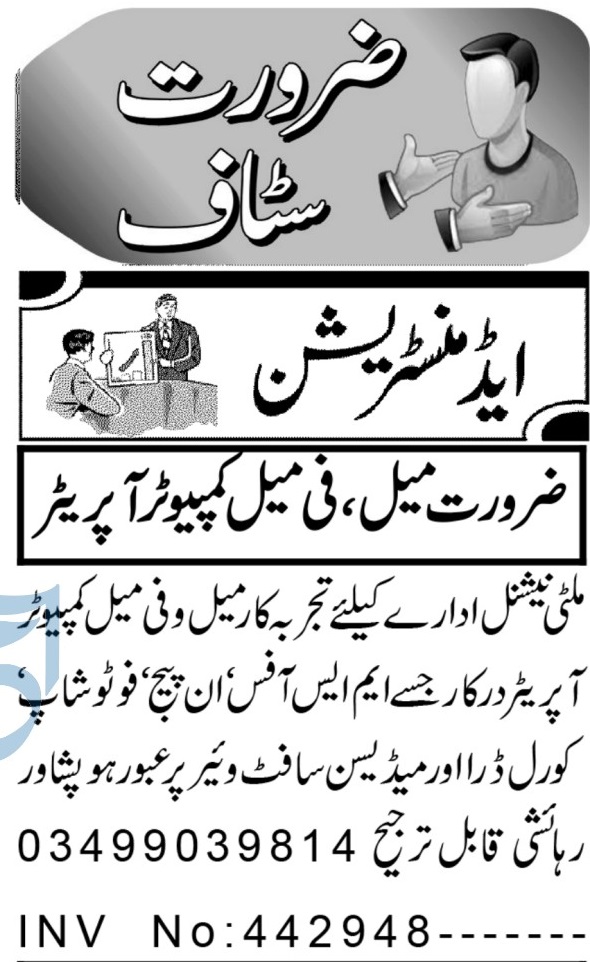 Multinational Company is looking for candidates for following posts as per job advertisement published in daily Aaj Newspaper of July 5, 2025 for location Peshawar, peshawar Khyber Pakhtunkhwa KPK Pakistan:
