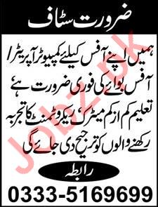 Computer Operator & Office Boy Jobs 2019 In Lahore