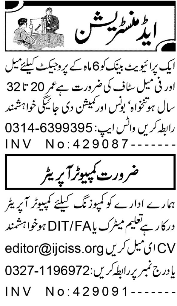 Computer Operator & Office Staff Jobs 2024 In Peshawar