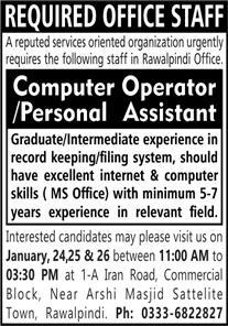 Computer Operator Personal Assistant Jobs In Rawalpindi