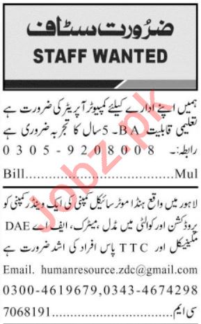 Apply as per details in job advertisement. Login to view further details of how to apply via https://www.jobz.pk online.