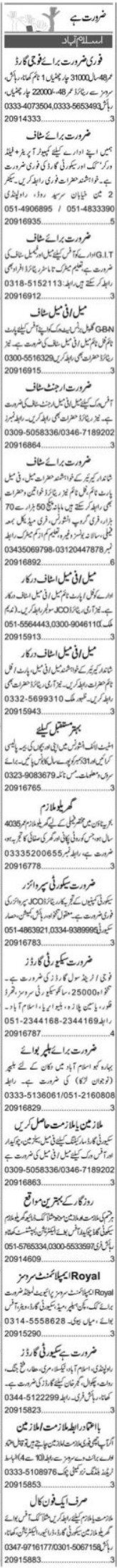 Private Company is looking for candidates for following posts as per job advertisement published in daily Express Newspaper of November 24, 2023 for location Islamabad, gujar khan, fateh jang, chakwal, taxila, hattar, rawalpindi and murree Islamabad Pakistan: