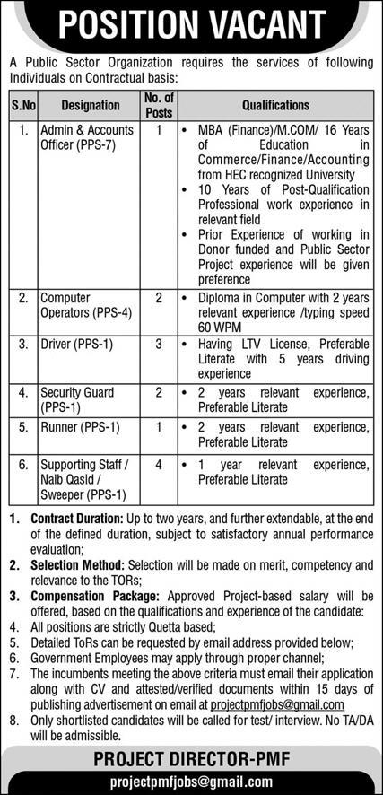 Public Sector Organization jobs advertisement dated about 25 March 2025 in daily Express Newspaper invites application for the vacant post of security guard, sweeper, naib qasid, ltv driver, accounts officer, computer operator, supporting staff, driver, admin officer and runner in Islamabad, islamabad Islamabad Pakistan. Preferred Education is MBA, Intermediate, Primary, DAE, Bachelor and M.com etc.