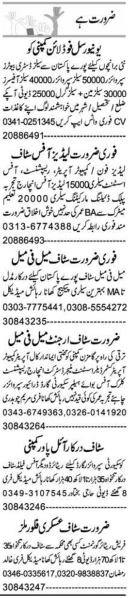 Bachelor, Intermediate, Matric, Master and Middle etc. educational qualification will be preferred.