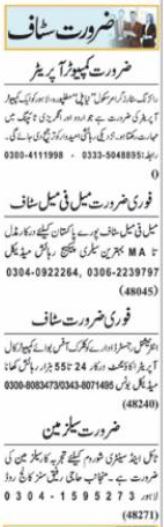 Private Company Lahore, lahore Punjab Pakistan invites applications from eligible candidates for the post of computer call operator, salesman, female office staff, computer operator, clerk, office staff, office boy and accountant as per advertisement of August 25, 2022 published in daily Nawaiwaqt Newspaper. Candidates with Intermediate, Bachelor, Matric and Middle etc. educational background will be preferred.