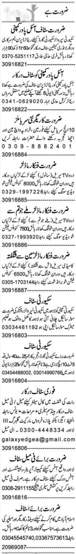 Private Company Gulberg 3 Lahore, islamabad Punjab Pakistan invites applications from eligible candidates for the post of laundry canteen staff, model, welder, security guard, call center agent, worker, security checker, actor, office staff, helper, receptionist, lathe machine operator, security staff, watchman, computer operator, chowkidar, security supervisor and foreman as per advertisement of April 29, 2025 published in daily Express Newspaper. Educational qualifications required Bachelor, BA, Intermediate, B.com, Matric and Middle etc.