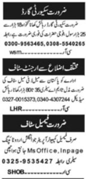 Vacant posts including computer operator, office staff, security guard and female office staff are announced in Private Company Lahore, islamabad Punjab Pakistan as per 13 December 2023 advertisement in daily Khabrain Newspaper. Intermediate, Matric, BA, MA, Middle and Bachelor etc. educational qualification will be preferred.