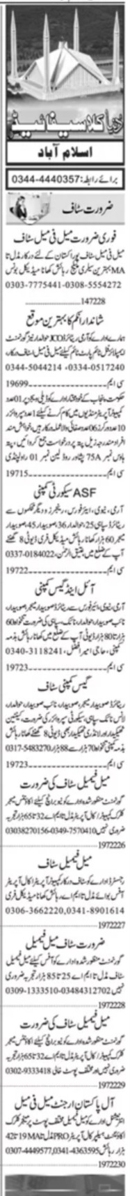 Vacant posts including clerk, manager, public relation officer, clerk computer, sanitary worker, jco, security supervisor, security guard, call operator, office staff, accounts manager, helper, subedar, accountant, havaldar, sweeper, computer operator, naib subedar, sipahi, office boy, worker and supervisor are announced in Private Company Islamabad, rawalpindi Islamabad Pakistan as per 19 July 2022 advertisement in daily Dunya Newspaper. Candidates with Matric, Bachelor, Intermediate and Middle etc. educational background will be preferred.