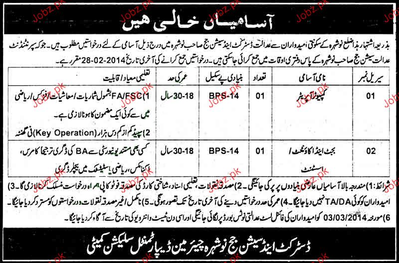 Apply as per details in job advertisement. Login to view further details of how to apply via https://www.jobz.pk online.