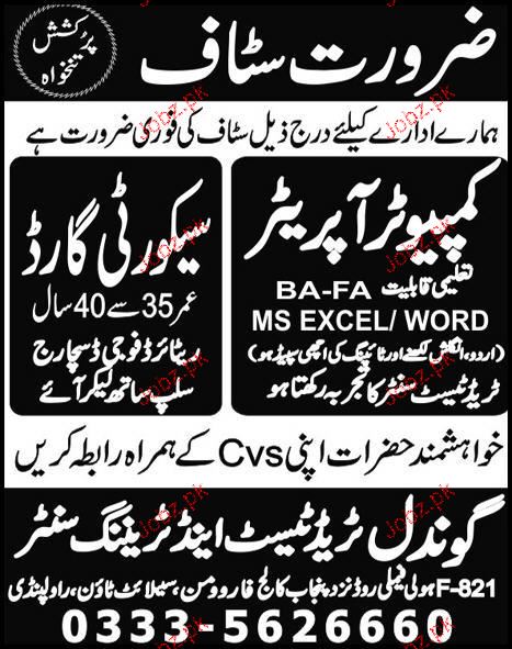 Apply as per details in job advertisement. Login to view further details of how to apply via https://www.jobz.pk online.