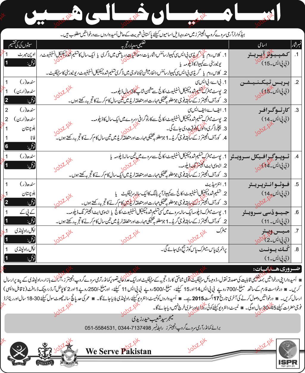 Computer Operators, Cartiographers Job In Pak Army