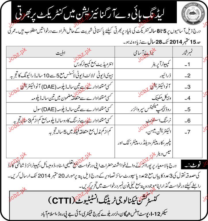 Apply as per details in job advertisement. Login to view further details of how to apply via https://www.jobz.pk online.