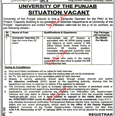 Computer Operators Job In University Of The Punjab