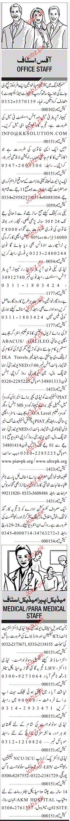 Computer Operators, Office Assistants and Female Teachers are required in Karachi.