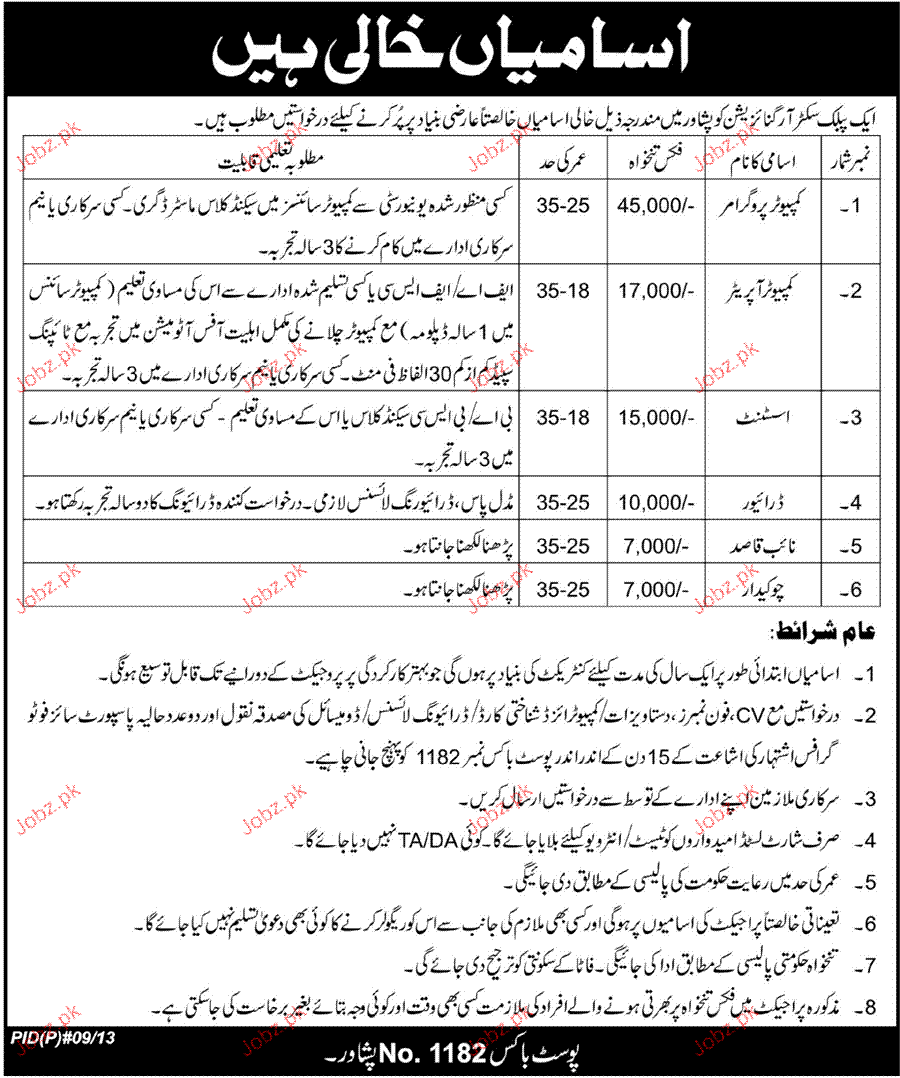 Apply as per details in job advertisement. Login to view further details of how to apply via https://www.jobz.pk online.