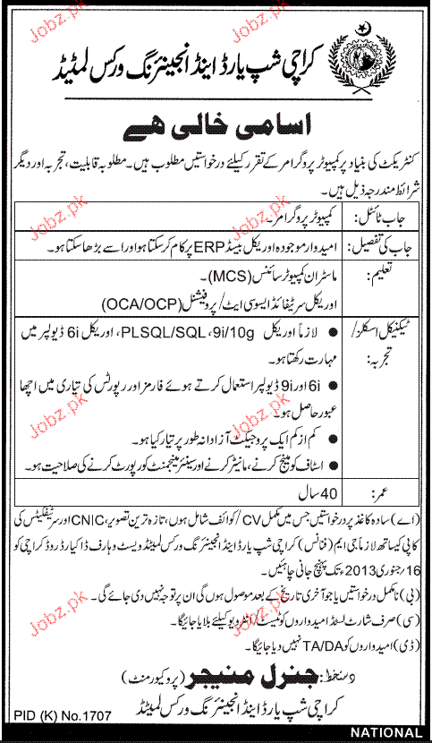 Apply as per details in job advertisement. Login to view further details of how to apply via https://www.jobz.pk online.