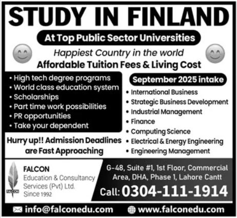 Falcon Education and Consultancy Services admissions 2025 for Computer Science has been announced. Eligible students who qualify as per admission criteria in Falcon Education and Consultancy Services Lahore Punjab Pakistan can apply in Computer College for academic year 2025. Students who want to enroll for academic session 2025 in qualification and admission criteria for Private institute can apply till last date 15 March 2025. Read newspaper ad for exact details.