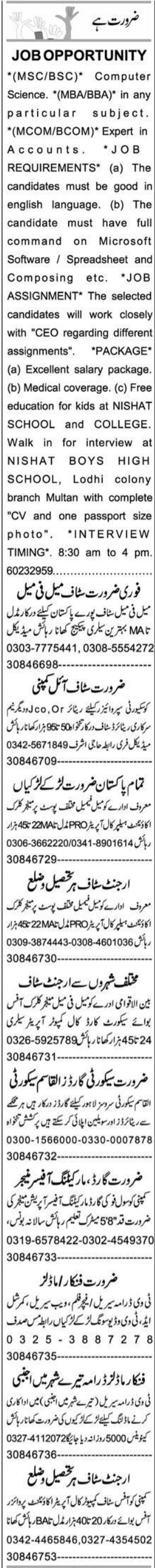 Todays New Jobs in Multan