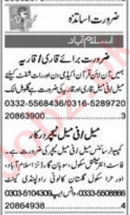 Private School is looking for candidates for following posts as per job advertisement published in daily Express Newspaper of July 29, 2022 for location Islamabad, islamabad Islamabad Pakistan:
