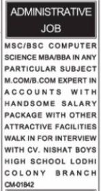Nishat Boys High School latest Classifieds Education jobs and others can be applied till 20 May 2023 or as per closing date in newspaper ad. Read complete ad online to know how to apply on latest Nishat Boys High School job opportunities. Some jobs in Nishat Boys High School may require skills like Administrative Support, Computer Science and Education & Tutoring.