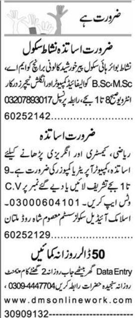 Private Company invites applications for job positions advertised in daily Express dated 11 February 2025 for following vacancies in Multan, multan Punjab Pakistan.