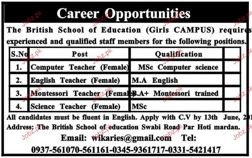 Latest Private Company Teaching Posts Mardan 2025