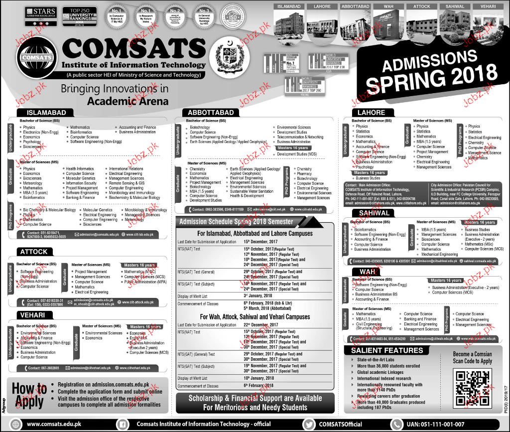 COMSATS Institute of Information Technology Admission in BS in Islamabad. Read newspaper ad for exact details.