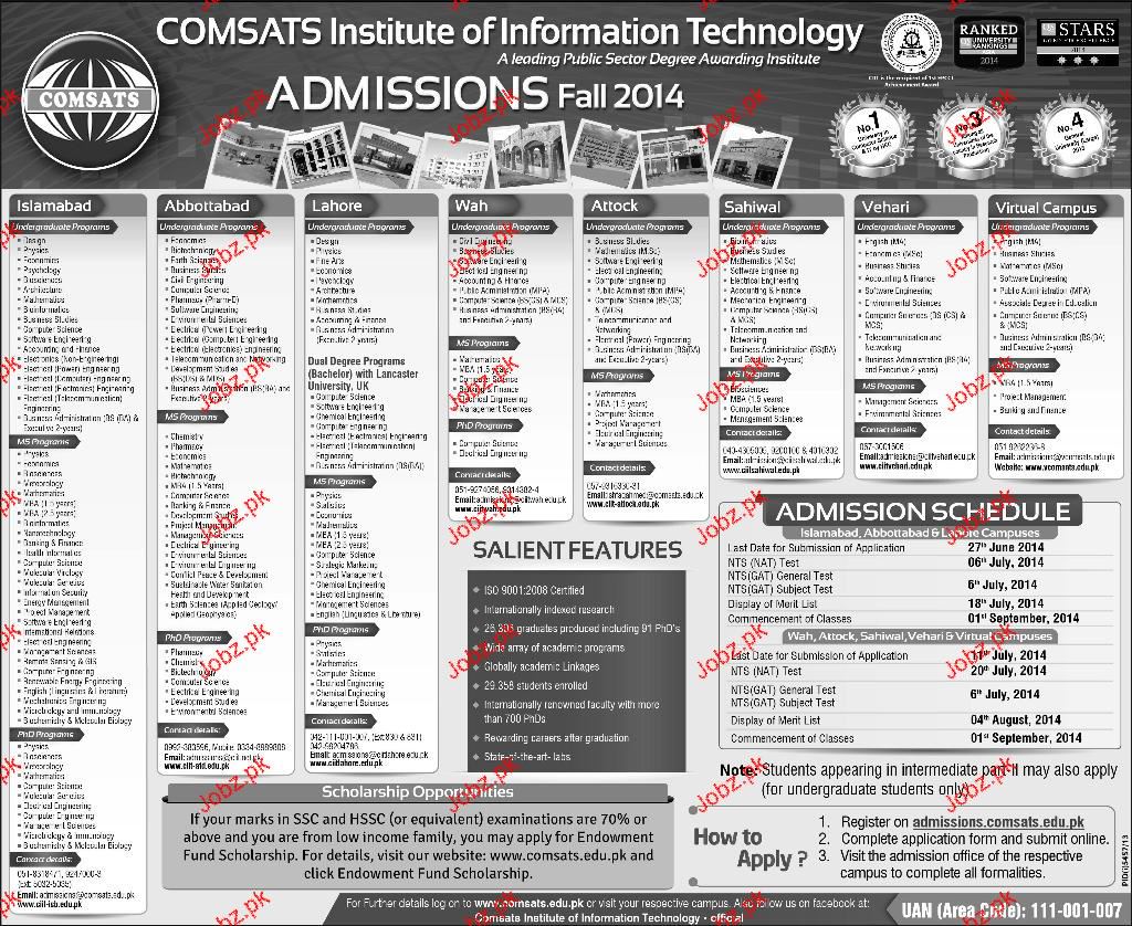 Comsats Institute of Information Technology Admission in MBA in Islamabd. Read newspaper ad for exact details.