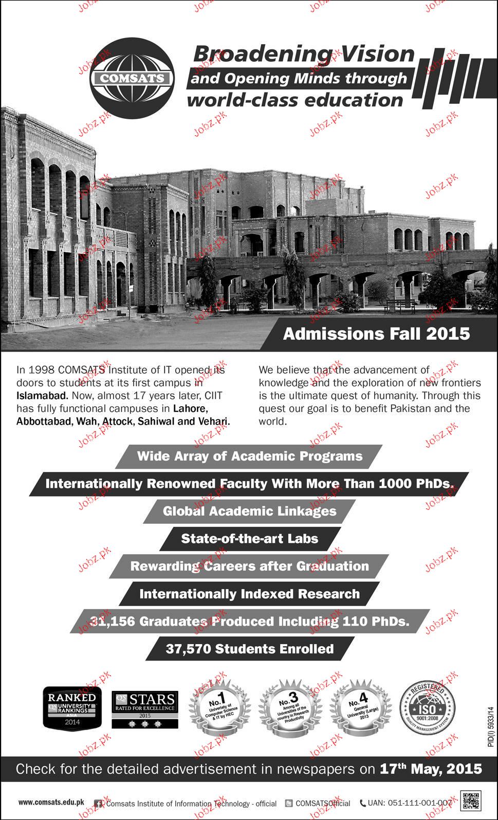 Comsats Institute of Information Technology Admission in Phd in Islamabad. Read newspaper ad for exact details.