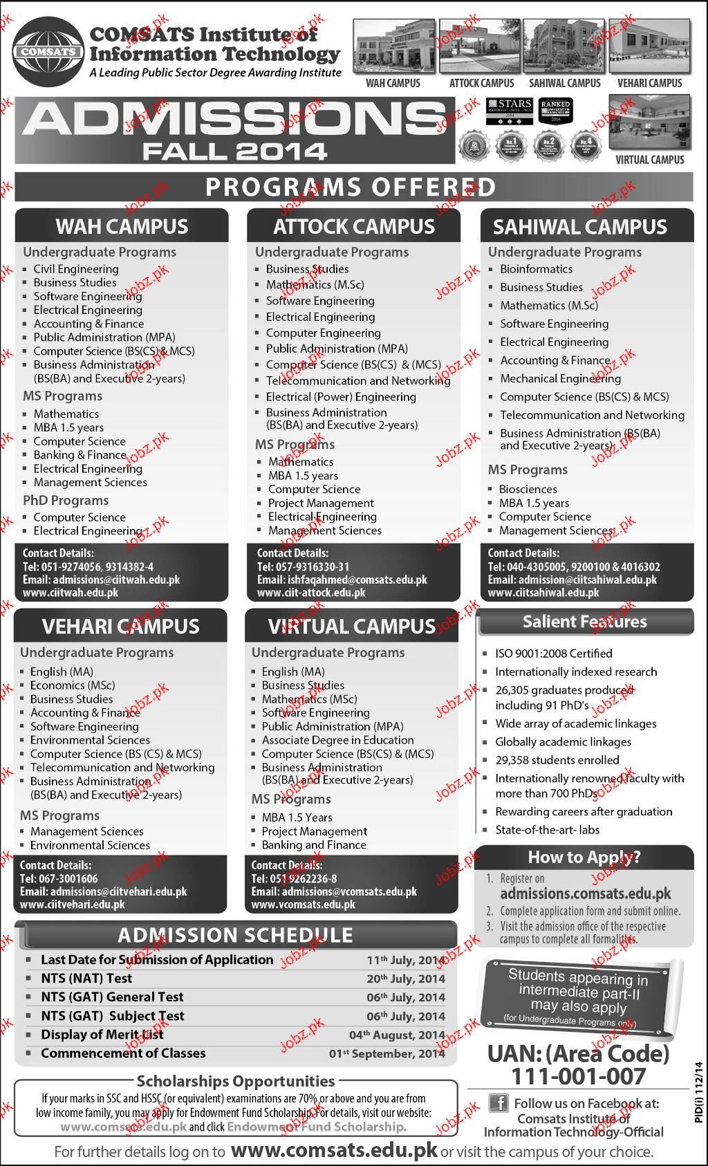 Comsats Institute of Information Technology Admission in Undergraduate in Wah Cant. Read newspaper ad for exact details.