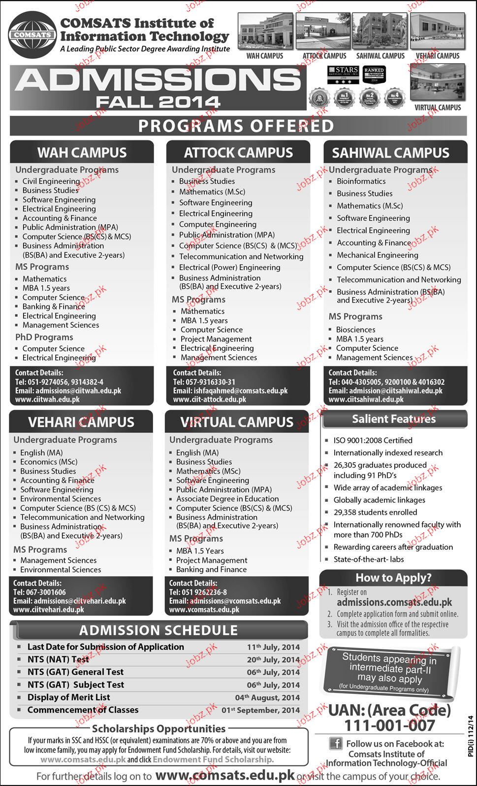 Comsats Institute of Information Technology Admission in Undergraduates Programs in Attock. Read newspaper ad for exact details.