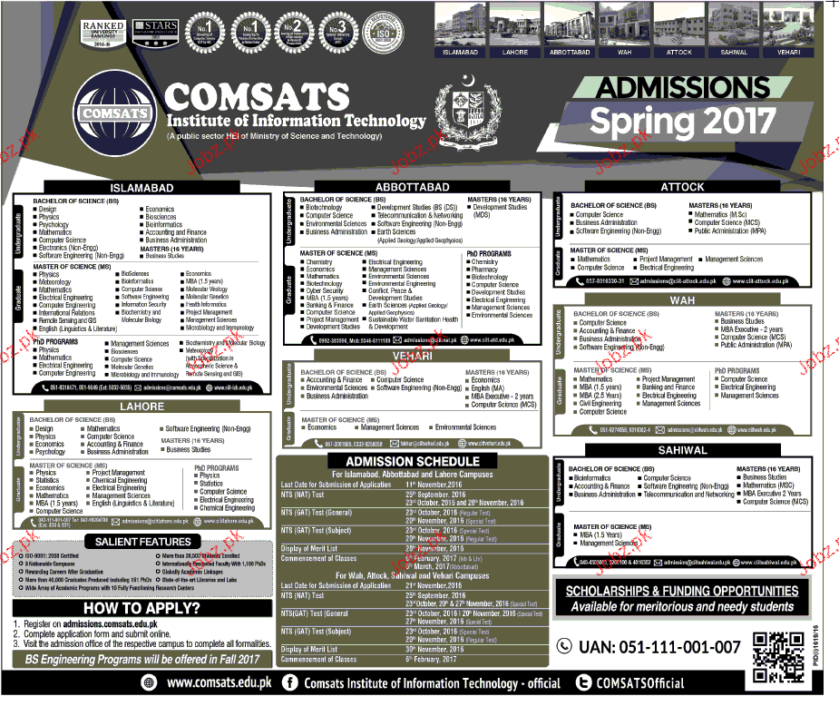 COMSATS Institute of Information Technology Admission in Undergraduate Programs in Islamabad. Read newspaper ad for exact details.