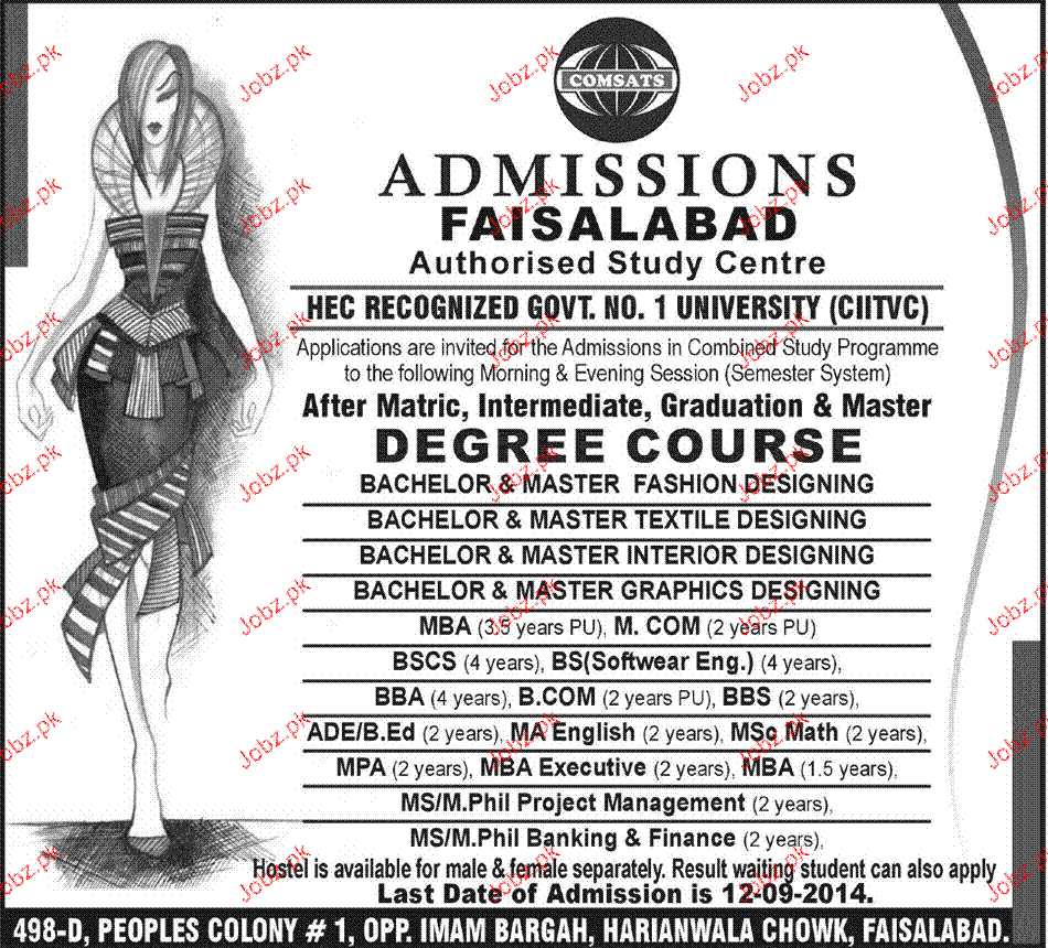 COMSATS Institute of Information Technology Admission in BA, MBA, BSCS< M.Com, BBS and B.COm in Faisalabad. Read newspaper ad for exact details.