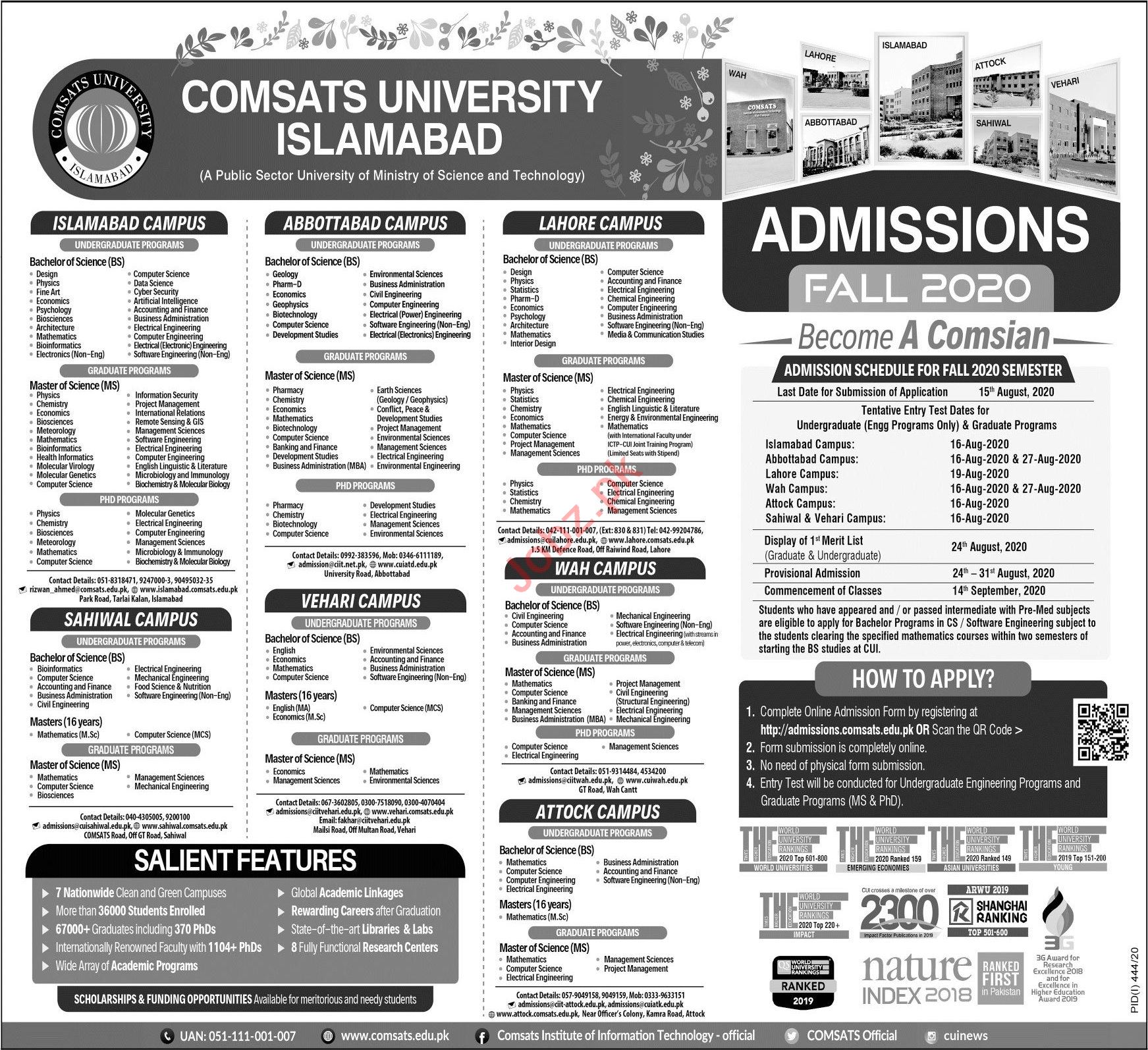Comsats University Islamabad CUI Admissions 2020 Masters
