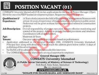 Comsats University Islamabad CUI Project Manager Job 2019