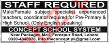 Concept School System Lahore Jobs 2018 For Teacher