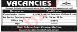 Concept Schools invites applications for job positions advertised in daily Jang dated 17 December 2023 for following vacancies in Multan, multan Punjab Pakistan.