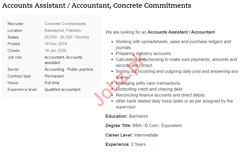 Concrete Commitments Rawalpindi Jobs 2020 Accounts Asst