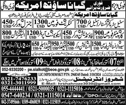 MS Shahroze International Overseas Employment Promoters invites applications for job positions advertised in daily Express dated 5 October 2024 for following vacancies in Georgetown, georgetown Guyana.