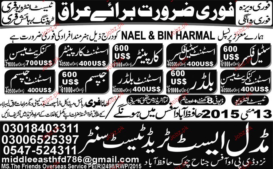 Concrete Mason, Assistant Carpenters, Steel Fixer Wanted