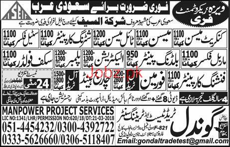 Latest Gondal Trade Test & Training Center Construction Posts Saudi Arabia 2025